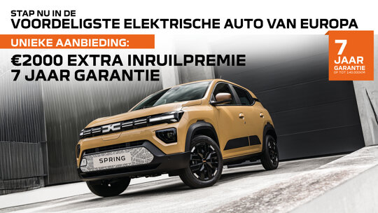 Kies vandaag voor een nieuwe Dacia Spring en pak € 2.000 extra inruilwaarde bovenop de inruilwaarde van uw auto. En met 7 jaar garantie bent u verzekerd van zorgeloos rijplezier. Liever Private Lease? U rijdt nu al een nieuwe Spring voor € 199 per maand. Stap over. Stap in. Waar wacht u nog op?