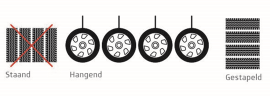 Wist u dat er een verschil zit tussen het bewaren van banden met velgen en banden zonder velgen? Losse banden bewaart u staand. Banden met velg hangend of gestapeld. Wij bewaren uw banden dan ook op de beste manier, in een goed geventileerde en droge ruimte, beschermd tegen direct zonlicht en uit de buurt van hittebronnen, chemische stoffen en oplosmiddelen.